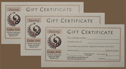 Dancing Cedar Arts gift certificates are the perfect solution for any special occasion.